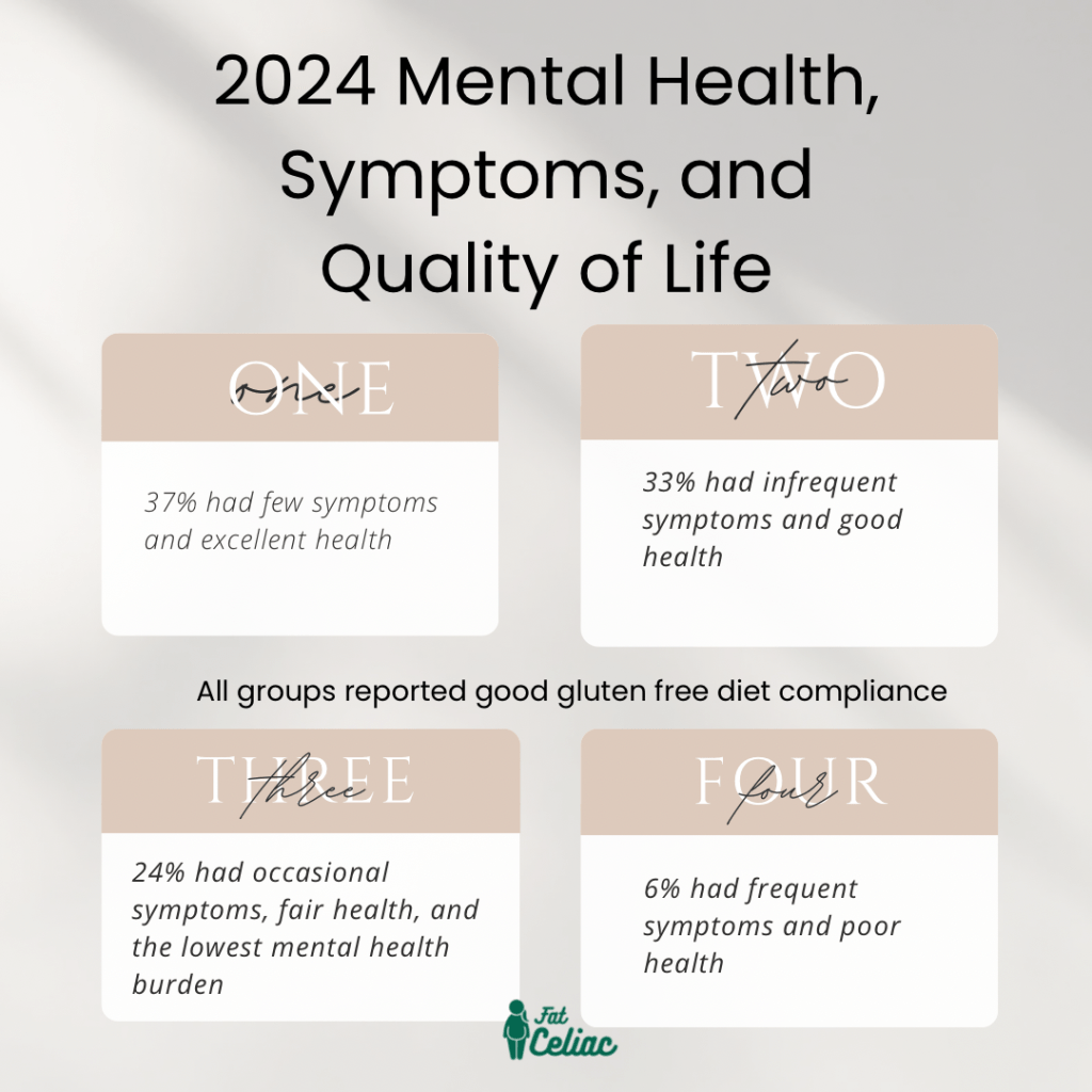 In 2024 researchers used the iCureCeliac database to evaluate the mental and physical load of having celiac disease. Researchers divided patients into four categories: