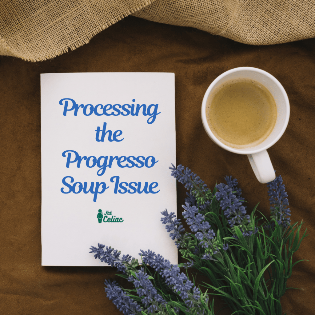 Failure to label a gluten free food accurately from a large manufacturer shakes me to the core. The Progresso Soup thing has stuck in my mind for a day now and I have to get this off my chest.