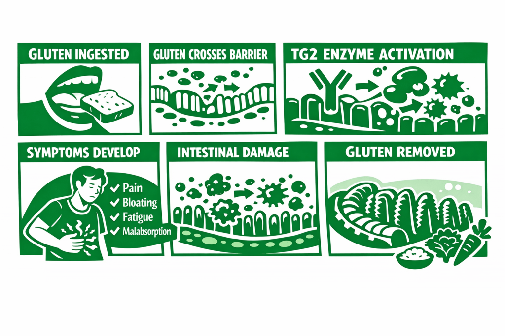 Even after years on a strict gluten-free diet, a tiny exposure can restart the entire cascade.